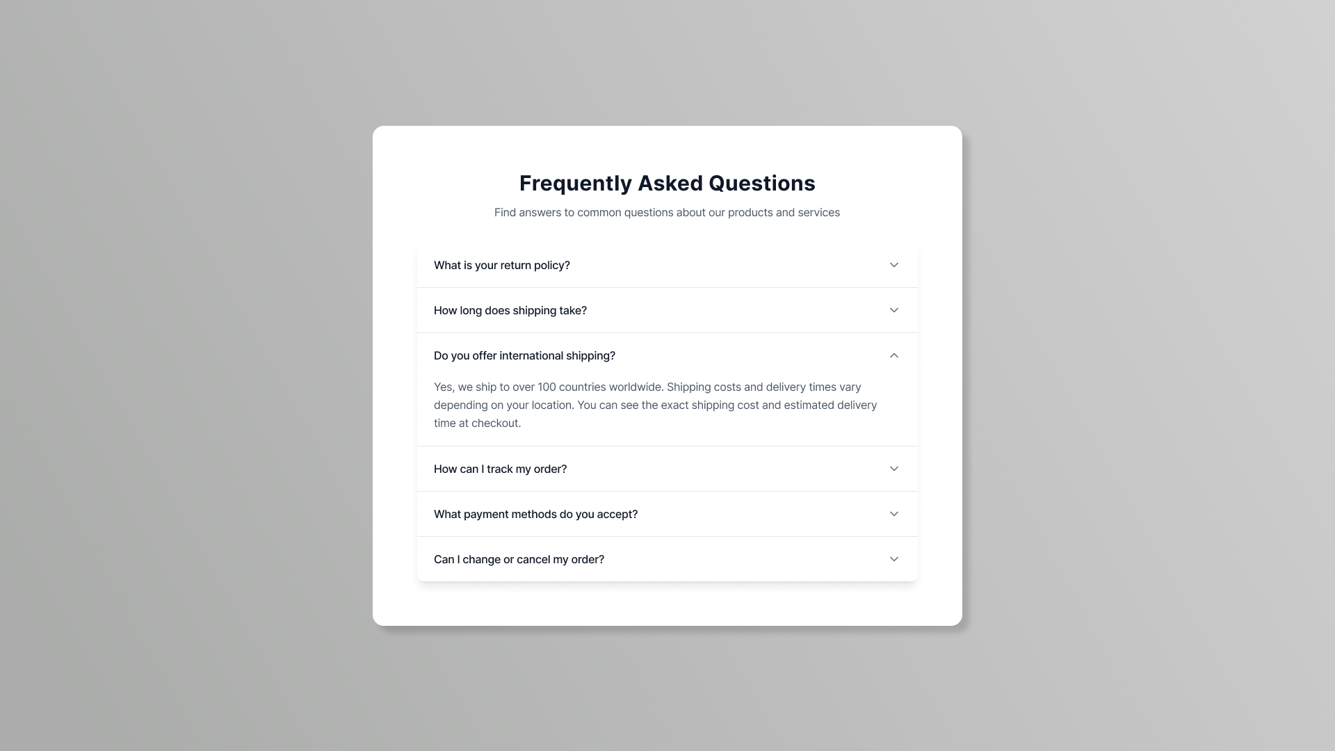 FAQ Dropdown UI